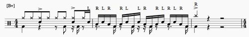 16分音符のフィルインの中に一部キックをはさみ込むこと それほど苦しまずにできるテクニカルフィルイン 今回はすこし違う趣きで。特定の楽曲ではなく一般的なフィルインの発想について紹介してみようかと思う。特にフィルインの中にキックを絡めたケースで…